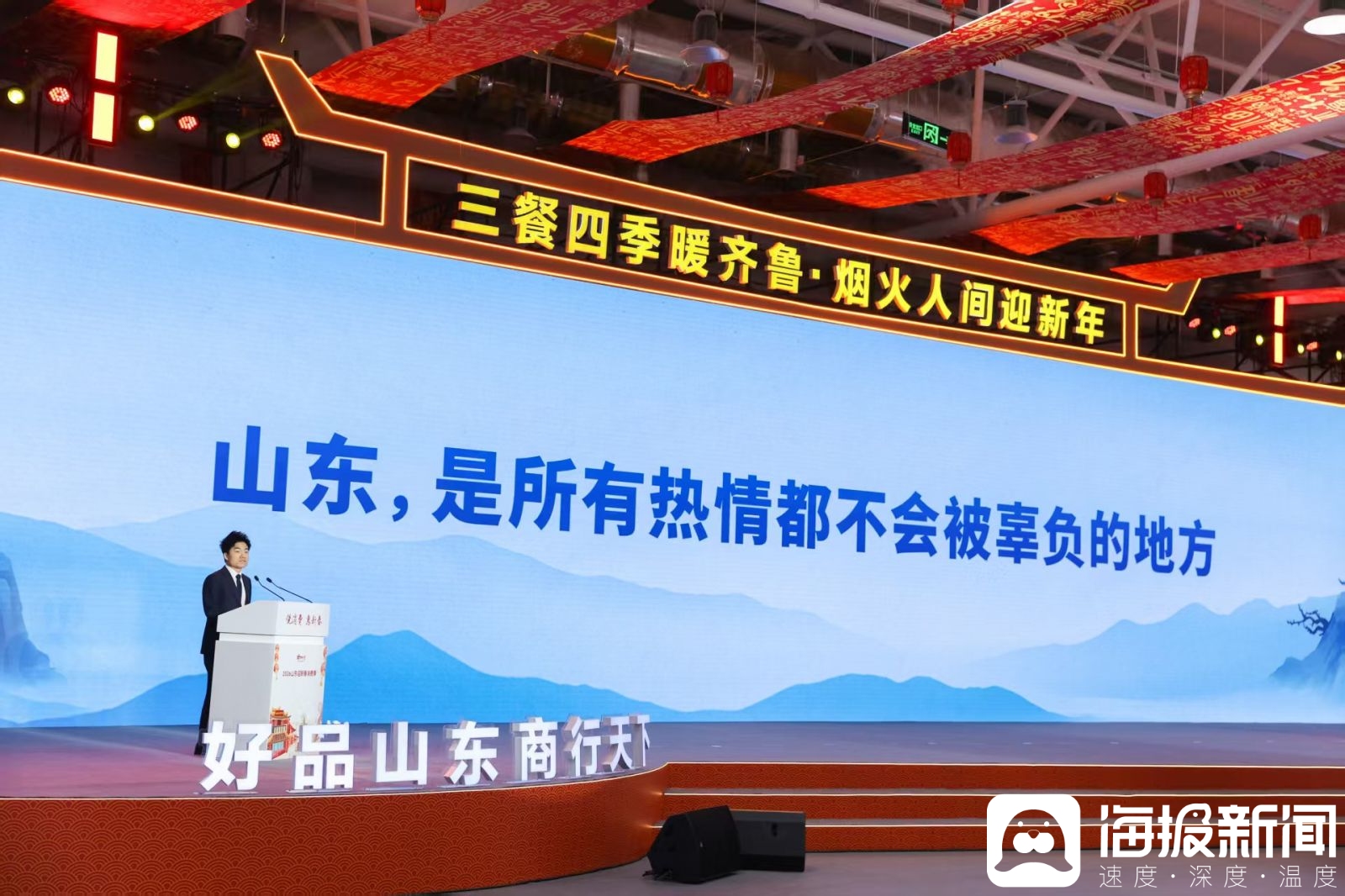 與輝同行負責人董宇輝來到2026山東迎新春消費季啟動式現場,號召全球網友來山東購好品、過大年。