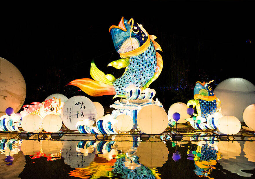 在技術(shù)升級(jí)的同時(shí),文旅融合也是對(duì)花燈民俗傳承創(chuàng)新的重要方式。近年來,山東多地以“夜游經(jīng)濟(jì)”為突破口,推出“花燈+旅游”“花燈+演藝”“花燈+美食”“花燈+小鎮(zhèn)”“花燈+美麗鄉(xiāng)村”等模式,通過“花燈+”融合發(fā)展,盤活了“吃、住、行、游、購(gòu)、娛”等旅游資源,讓非遺花燈賦彩現(xiàn)代生活。