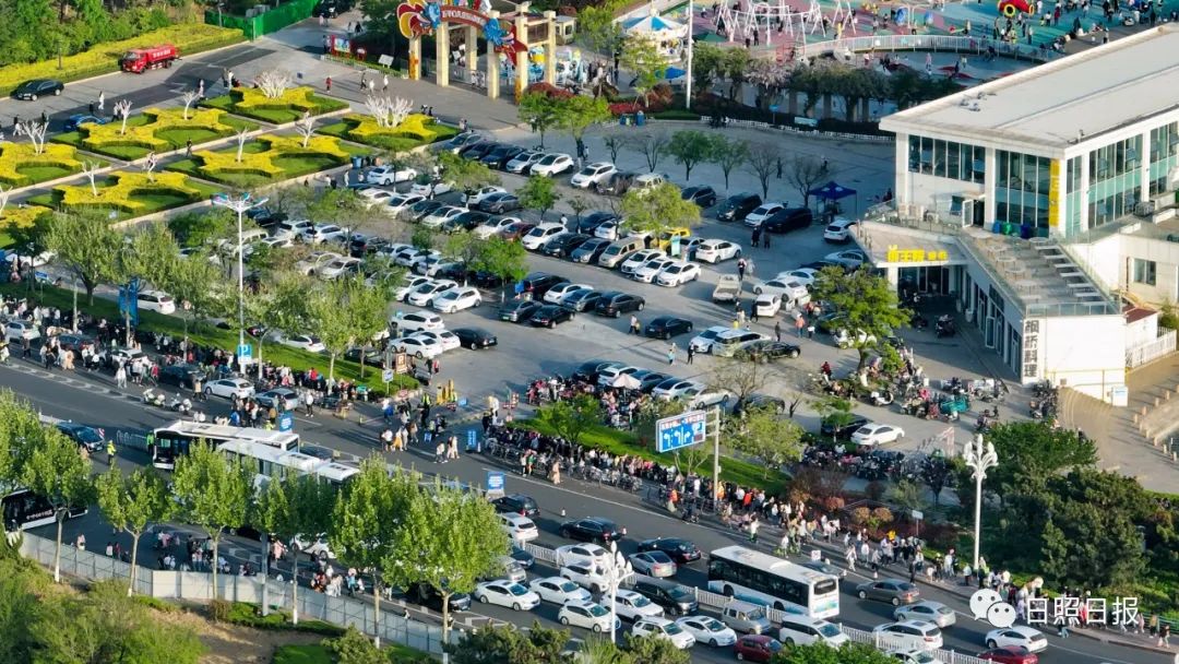 “我們這里可以免費停放,離東夷小鎮和萬達都很近。”5月1日,日照游泳中心停車場北門,不少計劃前往東夷小鎮的外地游客,在安保人員的引導下將車輛駛入停車場。