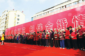 10月21日,由日照市委宣傳部、日照市文明辦等部門聯(lián)合主辦的“日照市慶祝九九 重陽(yáng)節(jié)暨第四屆金婚大典”在中盛幸福苑拉開(kāi)了序幕。50對(duì)金婚老人歡聚一堂,和數(shù)百名市民共同慶賀并見(jiàn)證這個(gè)大喜的日子,一起分享老人們風(fēng)雨同舟五十載, 相濡以沫譜寫(xiě)的華章,在莊重的婚禮進(jìn)行曲中,一起重溫50年前的經(jīng)典與浪漫。50對(duì)金婚老人是從上百對(duì)報(bào)名者中選出的代表,他們有的是曾經(jīng)浴血奮戰(zhàn)的沙場(chǎng) 戰(zhàn)士,有的是默默奉獻(xiàn)的普通工人,有的是普通的村民。他們攜手走過(guò)了50年的風(fēng)風(fēng)雨雨,終于迎來(lái)了燦爛的金婚。(記者 陳為峰 潘一凱 攝影報(bào)道)