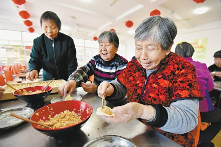 2月6日,兩位來自哈爾濱的老人在日照中盛幸福苑包水餃。春節臨近,年味越來越濃,我市各養老機構在春節期間,從生活、娛樂等各方面做了精心準備,為老人們營造濃厚的節日氣息,讓老人們在歡樂喜慶的氣氛中體味著“大家庭里濃濃的年味兒”。 (記者 路杰 攝)