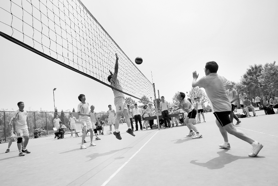 5月14日,運動員正在進行排球比賽。當日,日照市第五屆運動會高校組排球比賽在曲阜師范大學日照校區拉開戰幕。 本次賽期兩天。參賽的男排代表隊有曲阜師范大學、日照職業技術學院、濟寧醫學院、山東水利職業學院和日照技師學院五支;女排代表隊有曲阜師范大學、日照職業技術學院和濟寧醫學院三支。每支隊伍都有12名隊員,參賽運動員共計96名。(記者 惠雪燁 攝)