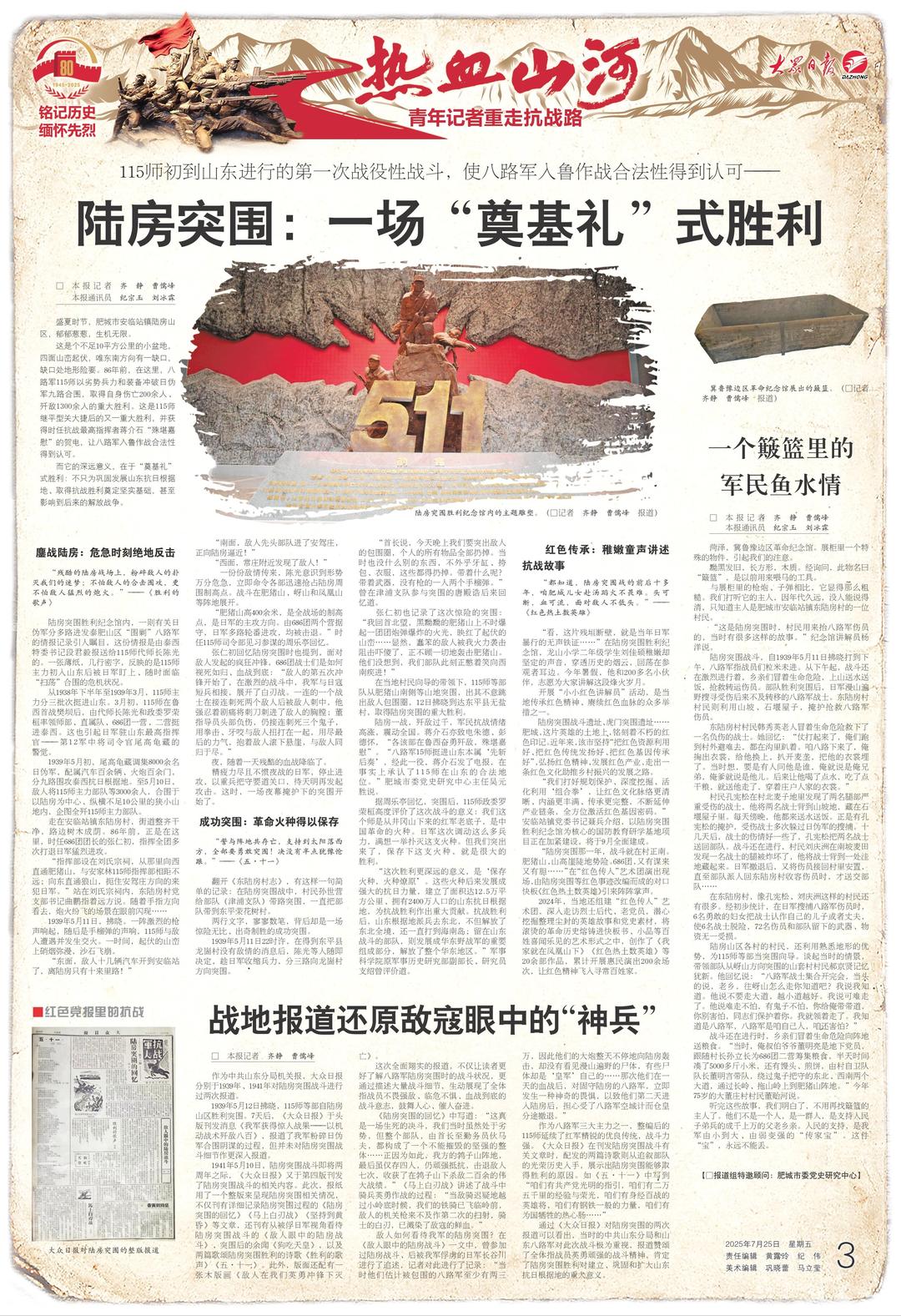 大眾日報·大眾新聞推出“銘記歷史 緬懷先烈——熱血山河·青年記者重走抗戰(zhàn)路”系列融媒報道。青年記者重走熱血抗戰(zhàn)路,在跨越時空對話中銘記歷史、緬懷先烈,全方位展現(xiàn)山東人民英勇抗戰(zhàn)精神。