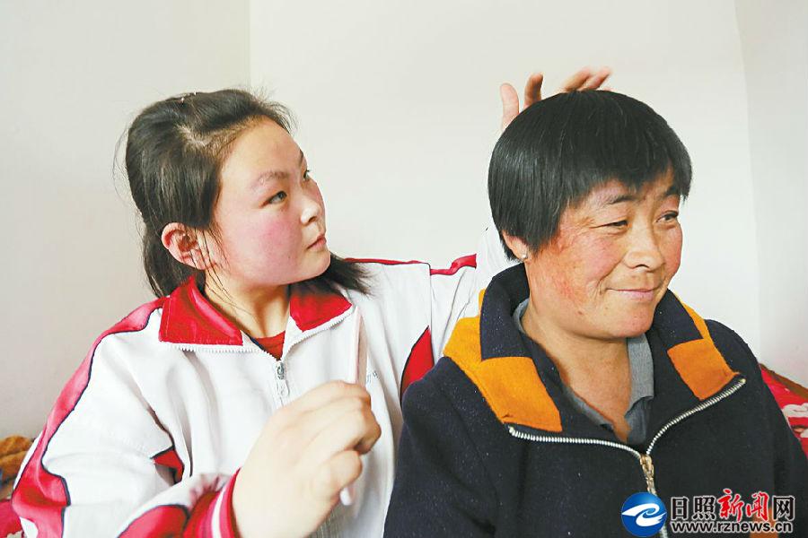 李瀟涵是莒縣庫山鄉中心初中八年級三班的學生,她不僅品學兼優,更重要的是她對父母的孝敬。尤其是她最喜歡的就是給失去右臂的媽媽梳頭。