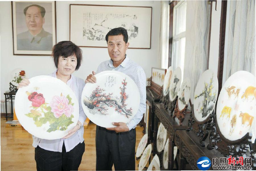 5月5日,東港區三莊鎮三村,雕刻藝術家崔華在他100多平方米的展廳里展示他的石雕石刻作品,上百件人物、動物、花卉、山水壁畫等墨玉、漢白玉石雕石刻作品,線條流暢、形象逼真、栩栩如生。