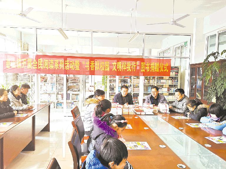 1月14日,莒縣碁山鎮全民閱讀系列活動暨2019年“書香飄校園、文明伴我行”主題活動在碁山鎮第二小學舉行。活動現場,碁山鎮為該校學生捐贈圖書2000余冊,營造人人愛讀書、書香溢校園的良好氛圍,讓更多學生養成閱讀好習慣。