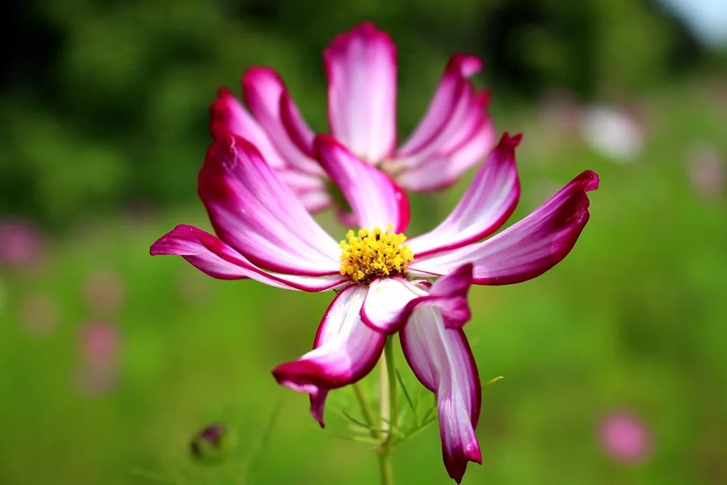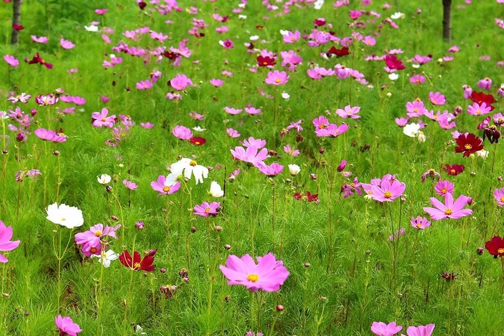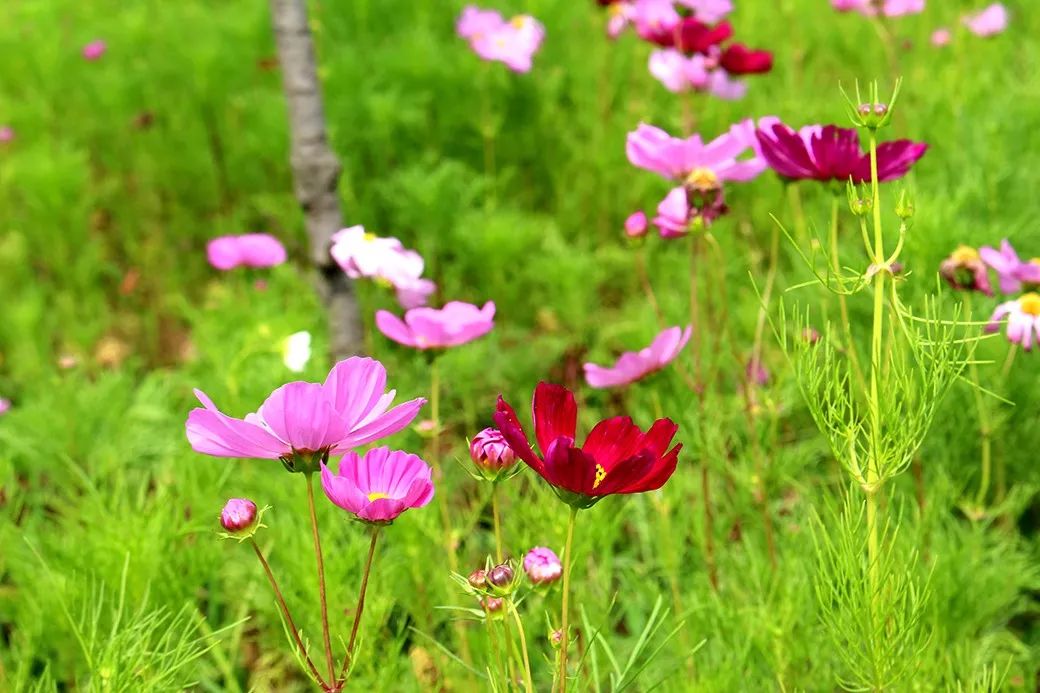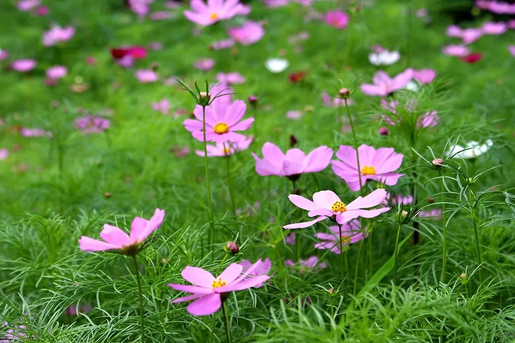 波斯菊,又名:秋英,花語是“少女的純情”。原產美洲墨西哥。平日路邊零散倒不覺稀奇,如今綿延一片,自成花海,美得讓人如癡如醉。