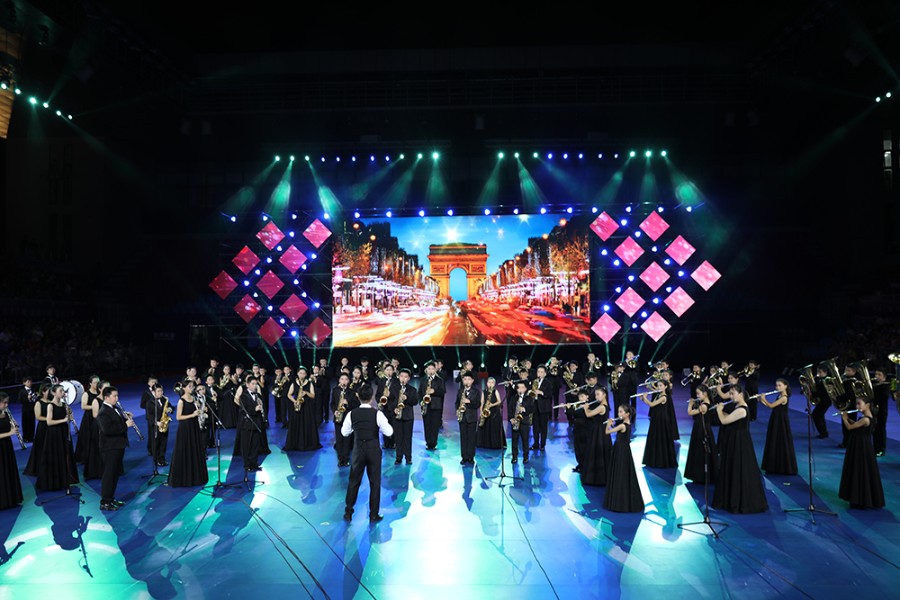 主流日照訊 8月9日晚上的日照,海風習習,群星璀璨,“山外有約·中國音樂小金鐘”第七屆全國中小學生管樂獨奏展演正式開幕。來自奧地利、馬來西亞、捷克、斯洛文尼亞等多個世界著名管樂團和全國各地1400余名中小學生齊聚日照,上演了一場精彩紛呈的音樂盛宴。