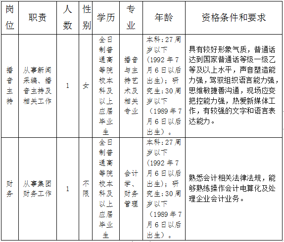 (二)復審。參加資格復審人員,攜帶《報名表》《誠信承諾書》,本人有效居民身份證、畢業證、學位證、教育部學歷證書電子注冊備案表、普通話等級證書(播音主持崗)等相關證件、證書的原件及復印件各1份,近期一寸免冠彩色照片3張。通過現場資格審查,確定應試人員名單,以電話方式告知考試時間及地點,請應聘人員保持通訊暢通。