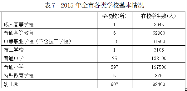 教育事業(yè)持續(xù)向好發(fā)展。年末含大學(xué)科技園高校在內(nèi)的普通高等院校6所,普通中等專業(yè)學(xué)校 13 所,技工學(xué)校類(日照技師學(xué)院)1所。普通中學(xué) 95 所,小學(xué)297所,小學(xué)學(xué)齡兒童入學(xué)率達(dá)100 %,初中入學(xué)率100%;全市有成人高等學(xué)校 1所,幼兒園607所,入園兒童2.75萬人,在園兒童9.24萬人。新建公益性幼兒園60處,全市學(xué)前三年幼兒入園率達(dá)98.92%,其中普惠性幼兒園覆蓋率達(dá)85.29%。特殊教育學(xué)校6 所。全市已創(chuàng)建省級(jí)重點(diǎn)專業(yè)10個(gè)、省級(jí)品牌專業(yè)4個(gè),國(guó)家級(jí)重點(diǎn)中等職業(yè)學(xué)校5所、國(guó)家級(jí)中等職業(yè)教育改革發(fā)展示范學(xué)校3所。獲2015年全省中職技能大賽團(tuán)體總分第3名、2015年國(guó)際大學(xué)生創(chuàng)新創(chuàng)業(yè)大賽中國(guó)總決賽特等獎(jiǎng)。
