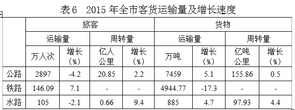 交通運輸業(yè)穩(wěn)定增長。全年完成地方公路客運量2897萬人次,比上年下降4.2%;公路旅客周轉量20.85億人公里,增長2.2%。地方公路貨運量7459萬噸,增長5.1%;公路貨運周轉量155.86億噸公里,增長0.5%。地方海上貨運量885萬噸,增長4.7%;海上貨運周轉量97.93億噸公里,增長4.4%。鐵路發(fā)送旅客量146.09萬人次,增長7.1%;鐵路貨運量4944.77萬噸,下降17.3%。