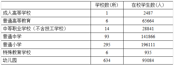 教育事業全面發展。年末含大學科技園高校在內的普通高等院校6所,在校學生 65664人;普通中等專業學校(未含技工學校) 14 所,在校學生2.88萬人;普通中學93 所,在校學生14.19萬人;小學295所,在校學生19.61 萬人。小學學齡兒童入學率達100 %,初中入學率100%。全市有成人高等學校 1所,在校學生2487人。幼兒園634所,入園兒童3.03萬人,在園兒童9.31萬人。新增普惠性民辦園33處,我市申報的20所幼兒園全部通過省示范性幼兒園驗收。在2016年全省中職技能大賽中,我市獲團體總分第三名,市科技中專學校得分列全省參賽中職學校第一。