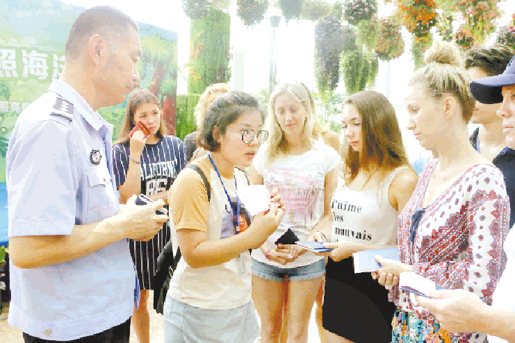 7月26日,市公安局出入境管理分局外管簽證科的工作人員來到日照海洋公園,為公園的外籍演員送去居留許可證。
