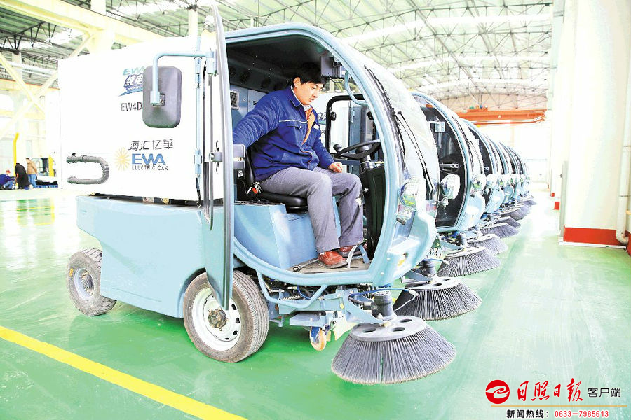 3月1日,工人在山東海匯環保設備有限公司對純電動清掃車進行測試。今年以來,莒縣招賢鎮抓住產業聚集區納入全縣總體規劃的機遇,加大對工業園區基礎設施的投入,對園區內綠化、亮化、美化,全面進行提升改造,加大硬件設施建設,提高園區承載能力。年內力爭招引投資過5000萬元項目2個、過億元項目4個。