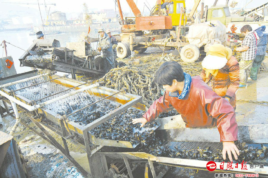 近日,嵐山區(qū)嵐山頭街道漁民正在收獲海虹。 該街道漁業(yè)養(yǎng)殖面積達(dá)到17100公頃,養(yǎng)殖品種有貽貝、牡蠣、海參、鮑魚、紫菜等,2016年產(chǎn)量達(dá)到13余萬噸,產(chǎn)值3億余元,年出口創(chuàng)匯4000萬美元。