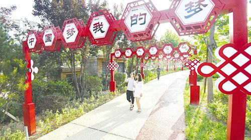 8月16日,市民在淄博路社會(huì)主義核心價(jià)值觀主題公園散步。在日照,核心價(jià)值觀的宣傳隨處可見(jiàn),如春風(fēng)化雨融入市民生活。在創(chuàng)建全國(guó)文明城市活動(dòng)中,我市緊緊圍繞踐行社會(huì)主義核心價(jià)值觀,提升市民的文明素質(zhì)和城市的文明程度。 (本網(wǎng)記者 路杰 攝)