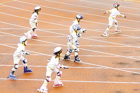 5月6日,孩子們在日照市第三屆幼兒輪滑大賽中參加輪滑競技比賽。近年來,我市各幼兒園紛紛開展特色校園運動和游戲,把趣味、競技、娛樂融入活動中,提高了孩子們的綜合素質。