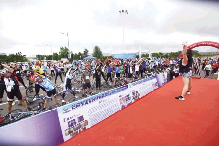 上午9時,日照經(jīng)濟(jì)技術(shù)開發(fā)區(qū)外商服務(wù)中心,人聲鼎沸,來自省內(nèi)青島、臨沂、濰坊和江蘇省周邊地市以及日照各區(qū)縣的近500名自行車專業(yè)運動員和騎行愛好者,頭戴流線型頭盔,身披花樣“戰(zhàn)袍”,摩拳擦掌、躍躍欲試。