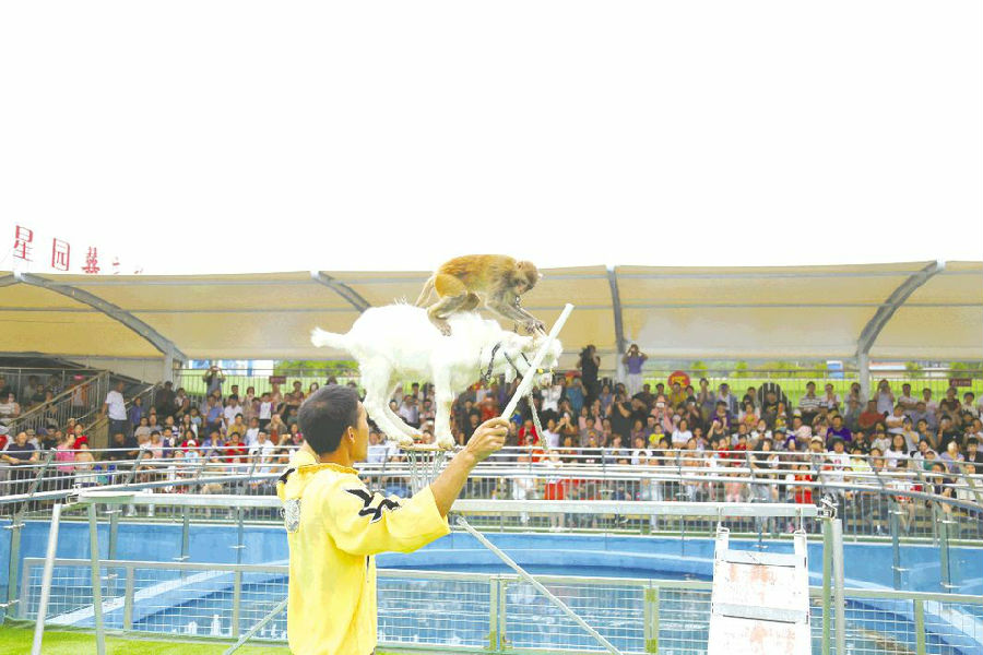 6月16日,車家村奎星園激戰鱷魚島項目正式啟用,圖為正在進行中的萌寵表演。
