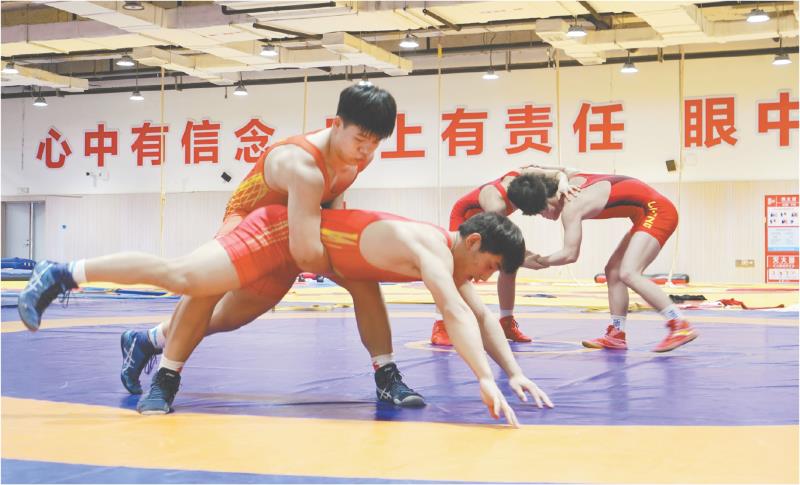 2月5日,在日照市體育運(yùn)動(dòng)學(xué)校,摔跤隊(duì)運(yùn)動(dòng)員正在進(jìn)行技術(shù)動(dòng)作訓(xùn)練。