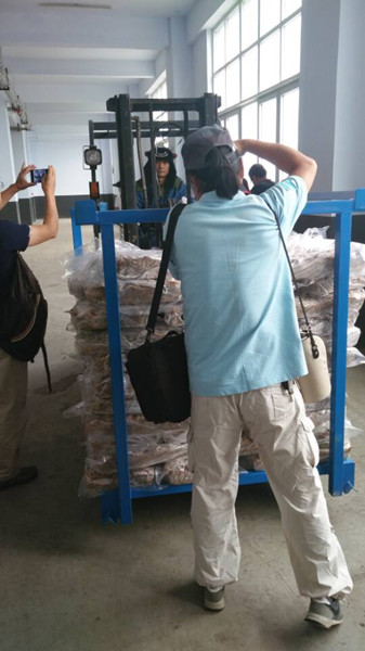 穿著厚厚棉衣的裝卸工人,將前往零下20攝氏度低溫的倉庫中裝卸貨物,吸引了來自全國百家媒體“大咖”的目光。8月26日,參加百家媒體社長總編看魅力日照采風活動的媒體領導來到中澳產業園采風。(記者 侯慶萍 攝)