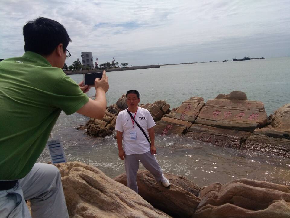 8月26日上午,百家媒體采訪團(tuán)一行來(lái)到嵐山區(qū),參觀嵐山省級(jí)文物保護(hù)單位海上碑,在海上碑前留念。嵐山海上碑位于日照市嵐山區(qū)阿掖山海濱旅游度假區(qū)內(nèi),以海邊天然巨石為碑身鑿琢而成,有明、清時(shí)期名人所書(shū)刻的四幅碑文,為蘇京,閻毓秀等歷代名人題書(shū)。(記者 丁文川 攝)