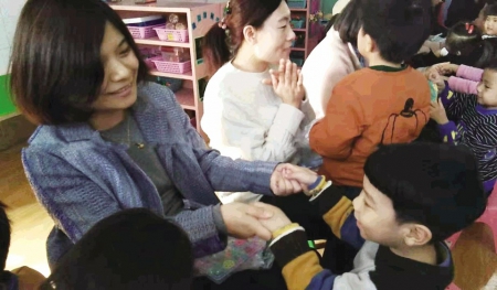 日前,東港區實驗幼兒園開展對孩子進行“愛媽媽,愛奶奶,愛姥姥”的情感教育,并在活動當天邀請孩子的媽媽來園參加親子活動?;顒觾热莅ā案璩业暮脣寢專医o媽媽說句悄悄話,送給媽媽的禮物”等。 圖為活動中孩子們正為媽媽獻唱《我的好媽媽》。(記者 王大鵬 攝)