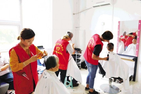 8月14日,志愿者來到市社會福利院,為生活在這里的老人提供“一對一”理發(fā)服務(wù)。 志愿者紛紛表示,通過志愿活動,在為福利院老人提供便利的同時,無形中提升了自身的價值感、社會責(zé)任感,是奉獻(xiàn)也是收獲。(記者 蔣月陽 攝)
