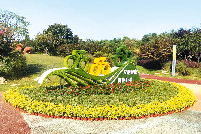 連日來,市園林環衛集團對市區主要公園廣場綠地、重要交通節點等區域開展綠化美化,扮靚城市。據統計,市人民廣場、銀河公園北門和東南門,以及植物園西門、南門共計擺放主題植物雕塑4組、蘑菇花球6組,布置國慶菊、一串紅、彩葉草等各類盆栽景觀花卉約6萬盆。