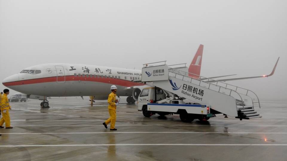 12月22日11時25分,由上海浦東機場飛往日照山字河機場的fm9125航班降落日照機場 日照日報社全媒體報道 記者:史樹梅 張磊