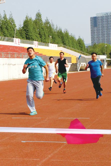 4月30日,幾位運動員正竭盡全力向百米賽道終點線沖刺。這是市質監局“慶五四青年節趣味運動會暨第五屆市運會選拔賽”的現場。