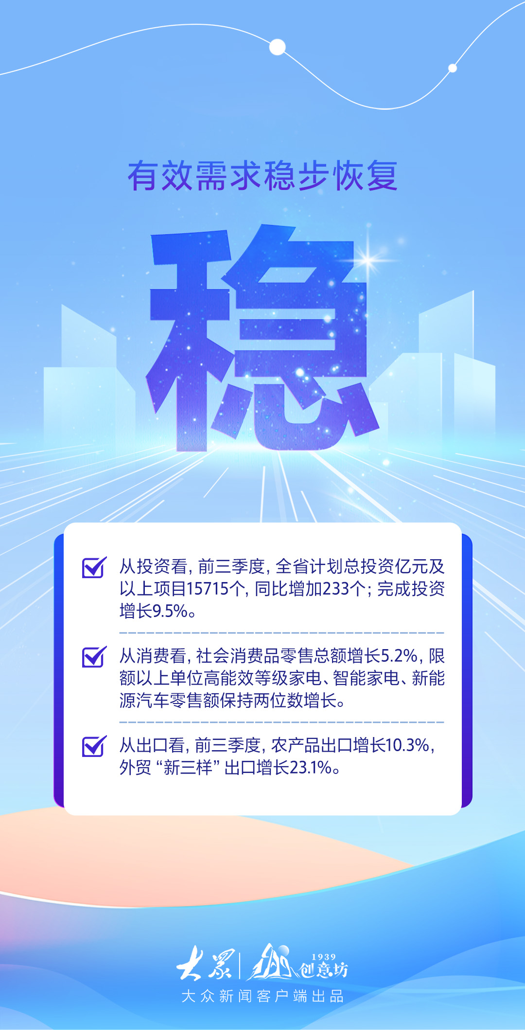 根據地區生產總值統一核算結果,前三季度全省生產總值為71981億元,按不變價格計算,同比增長5.6%。全省經濟持續保持穩健向好、進中提質的良好態勢。