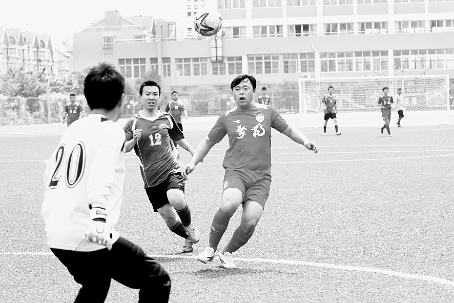 5月30日,足球愛好者們在比賽中爭搶。當日,由團市委、市青聯主辦的日照市首屆青年社團足球賽在日照港中學開賽,日照公安、陽光助殘志愿者、日照海事學院等12支青年社團足球隊參加比賽。據悉,本次足球賽將利用周末時間進行34場比賽,采用7人制,分上下半場共60分鐘。