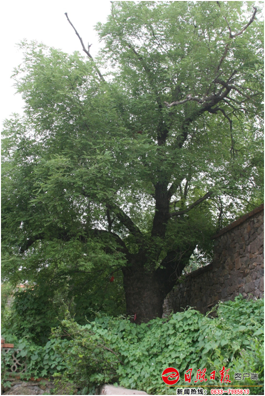 五蓮縣洪凝街道小尚莊國槐,樹齡200年,樹高7米,胸圍270厘米,冠幅7.5米,東西冠幅7米,南北冠幅8米。
