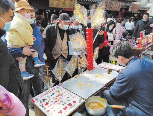勺為筆,糖作墨,糖畫攤前慶牛年