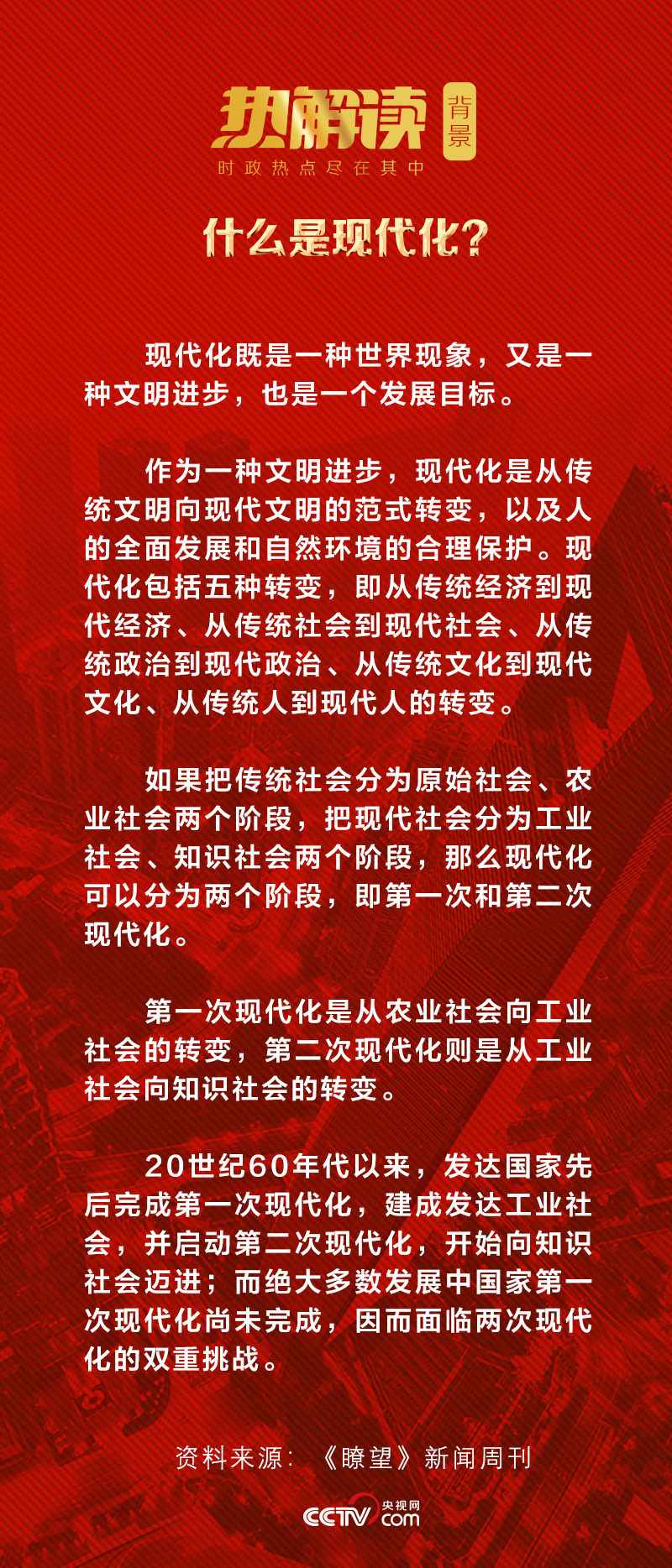 現代化作為一種世界現象和國際潮流,反映了人類社會從農業社會到工業社會、信息社會的歷史巨變。