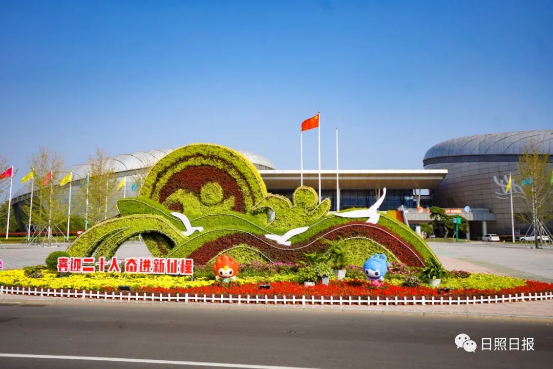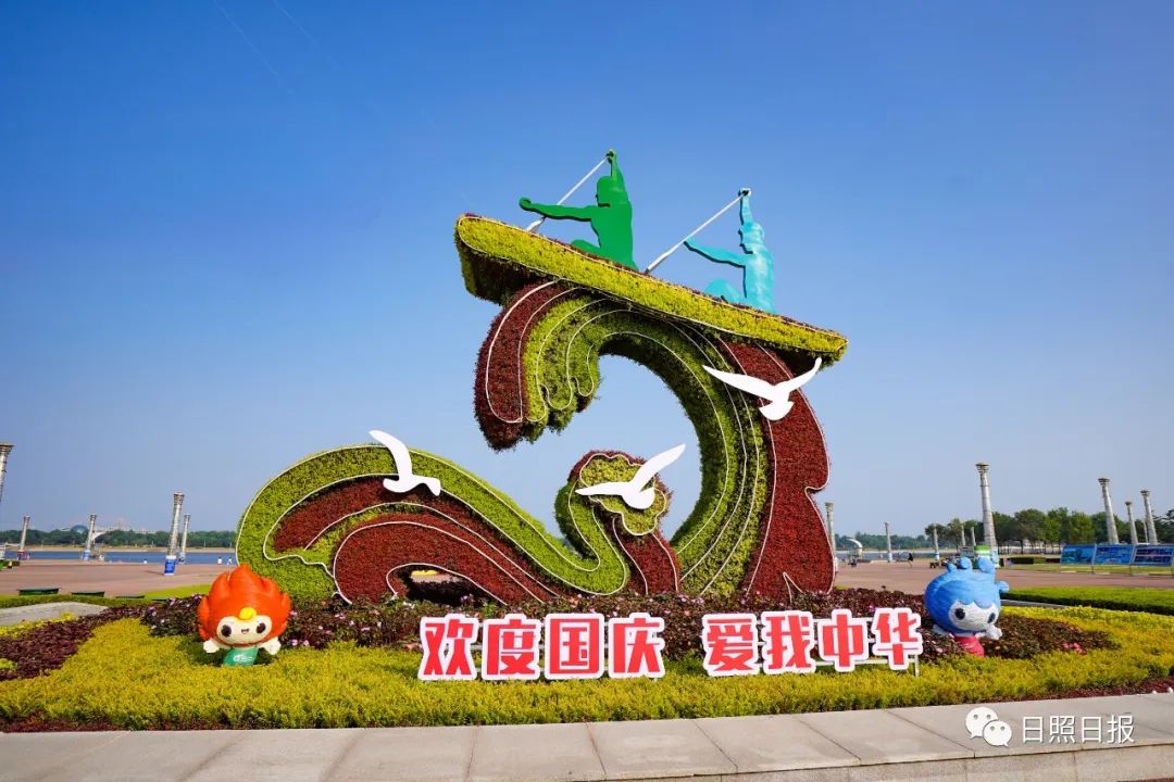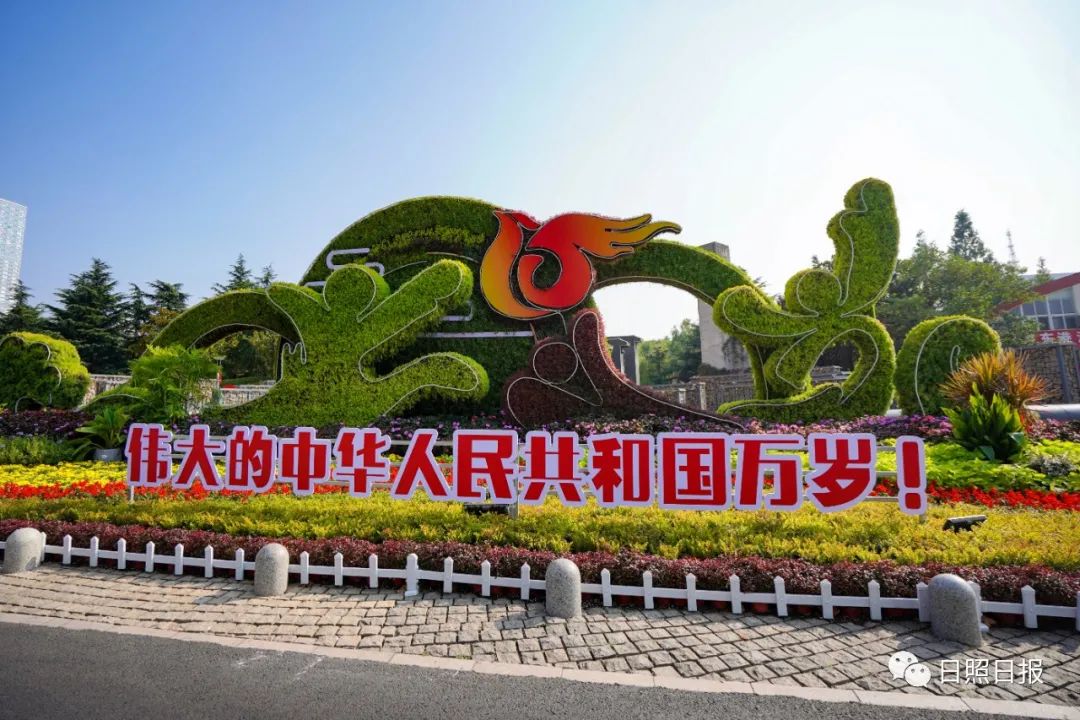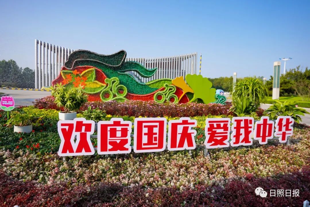 據了解,日照市城市管理局采取點、線、面相結合全面布展,共計安裝仿真立體雕塑及擺放國慶菊、一串紅、雞冠花等各類盆栽景觀花卉約4萬盆,設置“歡度國慶”“喜迎二十大”等慶祝標語,在部分道路節點處栽植桑貝斯鳳仙、鼠尾草、一串紅等花卉約6萬株。