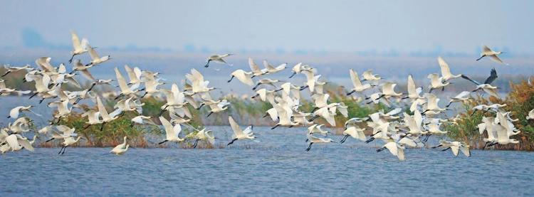 373種,這是黃河三角洲國家級自然保護區鳥類的數量。開展退耕還濕、退養還灘,恢復鹽地堿蓬,曾經的光板地、鹽堿灘,成為現在的“鳥類國際機場”。